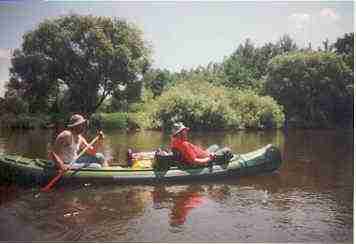heben. Das geht ganz gut wenn man ein leichtes Boot hat, aber in unserem Fall war das Schwerstarbeit. Nach dem Wehr kommt links eine Gartenwirtschaft, die wir unverzüglich aufsuchten um uns zu stärken