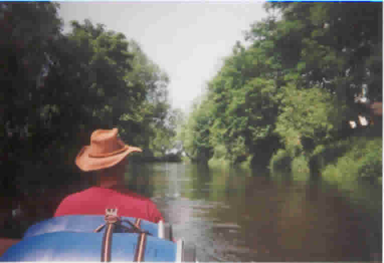 Nachdem das Boot wieder im Wasser war wurde der Fluss etwas schmäler und das Ufer war sehr dicht bewachsen. Auf der folgenden Strecke darf man das Boot nicht verlassen, da dies