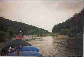 durchschleusen. Wegen des guten Wasserstandes war es möglich, im rechten Flussarm weiterzufahren, welcher sehr idyllisch und mit vielen Felsen bestückt war. Ab hier wird das Tal sehr eng und reizvoll. Der