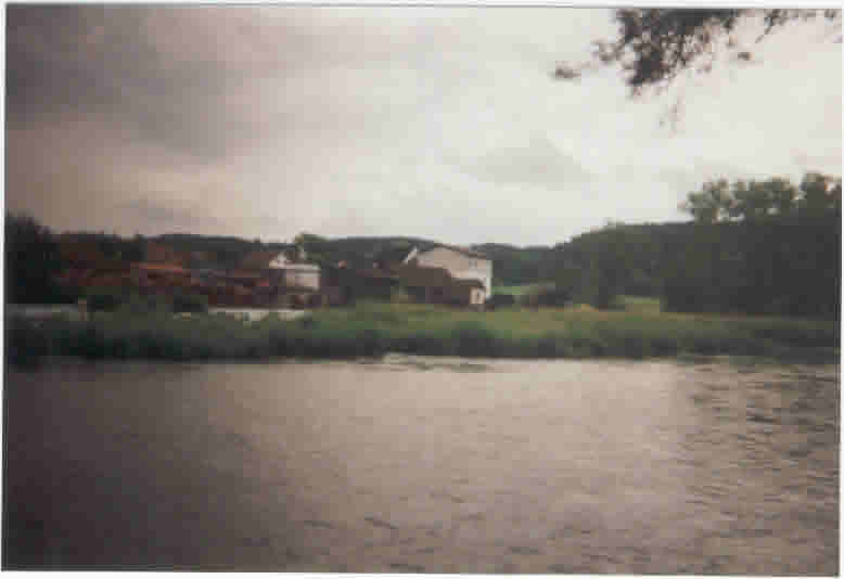 Bei Miltach trafen wir dann auf eine etwas stärkere Strömung, bei der wir etwas unsicher waren, ob unser Boot das ohne Wasser aufzunehmen schaffen würde und